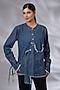Featuring a blue asymmetrical layered shirt in denim base with deconstructed hemline, frayed edges, playful ruffles, a mandarin collar, partial button placket, and adjustable cuff ties. Style with casual pants and neutral heels, ideal for casual wear.