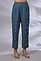Featuring blue mid-wash trousers in denim base with frayed detailing, elasticated waist, and hand-embroidered floral artwork. Style with a casual shirt and neutral heels, ideal for casual wear.