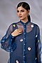 Featuring an electric blue shirt in organza base with hand embroidered floral applique, bishop sleeves, and buttoned cuffs. It is paired with an inner slip. Style with casual pants and neutral heels, ideal for casual wear.
