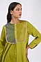 Featuring a pickle green straight tunic in giza cotton base. It is paired with trousers. Accentuate it with minimal jewellery and heels for a complete look.