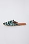 Featuring a pair of emerald green mules in crepe base with bugle beads, sequins, silk thread, metallic wire, and thread embroidery.