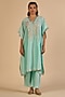 Featuring an aqua kaftan in chanderi base. Accentuate it with pants, stud earrings and wedges for festive gatherings.