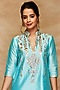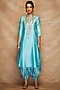 Featuring an aqua A-line kurta in pure chanderi silk base with a collar, an asymmetrical hemline, and gota detailing. This contains only one piece.