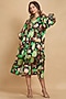 Black Linen Floral Digital Printed Knee-Length Dress