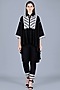 Featuring a black shirt in viscose and satin base with gold coin and rick rack lace embroidery. This contains only one piece.