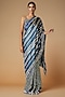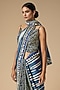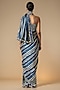Featuring a blue saree in modal satin base. Accentuate it with a blouse, statement jewellery and heels for pre-wedding ceremonies.