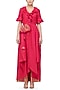 Featuring a bright pink tunic in cotton silk base with a v-neck, front opening, ruffles and a gota Potli. This contains only one piece.