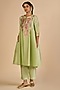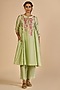 Featuring green pants in chanderi base. Accentuate it with a kurta, polki earrings and block heels for festive occasions or cultural celebrations.
