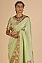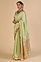 Featuring a green saree in chanderi base. Accentuate with a blouse, polki earrings and block heels for festive occasions or cultural celebrations.