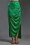 Featuring a green gathered skirt in modal satin base. Style it with a shirt, statement earrings and heels for a complete look.