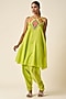 Lime Green Chanderi Ikat Applique Sleeveless Kurta