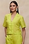 Gulabo by Abu Sandeep features a mesmerizing Lime Green Crop Shirt that captivates with its elegance. The eye-catching piece is crafted in linen with half-sleeves. Accessorize the designer crop shirt with pants, statement jewellery and heels for office or casual wear.