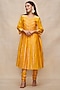 Mustard Chanderi Gota Work Pleated Kurta