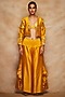 Featuring mustard sharara pants in pure chanderi silk base with ruffles and gota work. This contains only one piece.