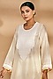 Featuring an off-white A-line kurta in chanderi base with applique work. Style it with dangler earrings for festive occasions.
