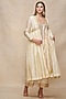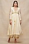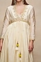 Gulabo by Abu Sandeep features a mesmerizing Off-White Overlay that captivates with its elegance. The eye-catching piece is crafted in chanderi with gota work. Accessorize the designer overlay with pants, statement jewellery and heels for a festive occasion.