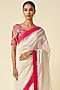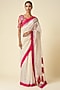 Featuring an off-white saree in chanderi base with ikat applique detail. Accentuate it with dangler earrings and heels for a festive look.