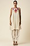 Off-White Chanderi Ikat Applique Sleeveless Kurta