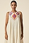 Featuring an off-white sleeveless kurta in chanderi base with abla and ikat applique detail. Accentuate it with pants, dangler earrings and heels for a festive look.