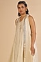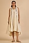 Featuring an off-white midi dress in chanderi base. Accentuate it with statement earrings and heels for evening soirees.