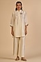 Featuring off-white pants in chanderi base. Accentuate it with a shirt, statement earrings and wedges for casual evening outings.