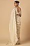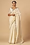 Featuring an off-white saree in chanderi base. Accentuate it with a blouse, gold earrings and wedges for festive gatherings or weddings.