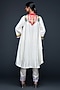 Gulabo By Abu Sandeep features an off-white D-tunic in cotton silk base. Accentuate it with statement earrings and heels for festive occasions or pooja ceremony.