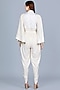 Featuring an off-white jumpsuit in viscose and satin base with kaftan sleeves, gold coin and rick rack lace embroidery. This contains only one piece.