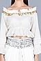 Featuring an off-white off-shoulder top in cotton cambric base with gold coin and rick rack lace embroidery. This contains only one piece.