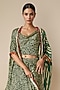 Featuring an olive green cape in modal satin base. Accentuate it with a top, pants, statement jewellery and heels for a festive look.