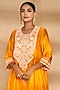 Featuring an orange kalidar kurta in chanderi base with applique work. Style it with dangler earrings for festive occasions.