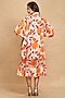 Orange Linen Floral Digital Printed Knee-Length Dress
