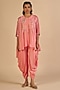 Featuring pink dhoti pants in chanderi base. Accentuate it with a kurta, statement earrings and wedges for festive gatherings or family functions.