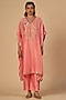 Featuring a pink kaftan in chanderi base. Accentuate it with pants, stud earrings and wedges for festive gatherings.