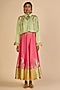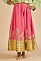 Featuring a pink skirt in chanderi base. Accentuate with a fusion top, polki earrings and block heels for festive occasions or cultural celebrations.