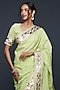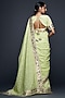 Gulabo By Abu Sandeep features a pista green saree in chanderi jamdani base with gota detail. Accentuate with statement jewellery and heels for a festive occasion or wedding ceremony.