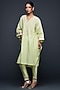 Gulabo By Abu Sandeep features pista green pants in chanderi base. Accentuate it with a kurta, statement earrings and heels for a festive occasion or pooja ceremony.