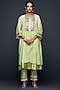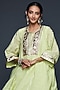 Gulabo By Abu Sandeep features a pista green layered kurta in jamdani base with gota applique detail. Accentuate with pants, statement jewellery and heels for a festive occasion or pooja ceremony.