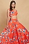 Featuring a red circular skirt in cotton satin base with digital print. Accentuate this designer skirt with a crop top, dangler earrings and heels for casual or resort wear.