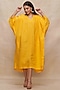 Gulabo by Abu Sandeep features a mesmerizing Yellow Kaftan Dress that captivates with its elegance. The eye-catching piece is crafted in linen. Accessorize the designer kaftan dress with statement jewellery and heels for vacation or casual wear.