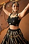 Featuring a black lehenga in chanderi and cambric cotton base with hand embroidery in rajasthani technique of applying delicate metallic ribbons. It is paired with an unstitched blouse fabric and an organza embroidered dupatta. Accentuate it with statement jewellery, a potli bag and embellished heels for a polished ensemble, ideal for a wedding, sangeet nights or engagement ceremony.