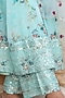 Featuring a blue anarkali in cotton base with floral detailing. It is paired with matching palazzo pants and an organza embroidered dupatta.