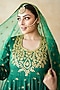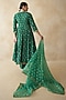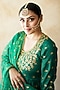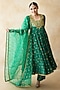 Featuring a green anarkali in chanderi base with gota patti, zari work and hand embroidery. It is paired with pure cotton pants and an organza dupatta. Accentuate it with statement jewellery, a potli bag and embellished heels for a polished ensemble, ideal for a festive occasion, mehendi, wedding or engagement ceremony.