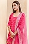 Featuring a neon fuchsia straight kurta in georgette and organza base with mirror embroidery. It is paired with matching sharara pants and a dupatta.