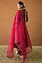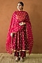 Featuring a red anarkali in chanderi base with gota patti, zari work and hand embroidery. It is paired with pure cotton pants and an organza dupatta. Accentuate it with statement jewellery, a potli bag and embellished heels for a polished ensemble, ideal for a festive occasion, wedding or engagement ceremony.