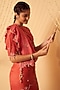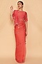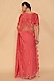 Featuring a coral pink saree in striped chanderi and organza base with floral motif embellishments. It is paired with an unstitched blouse. Accentuate with statement jewellery and heels for a wedding or sangeet ceremony.