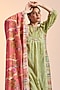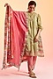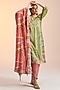 Featuring a green kurta in cotton silk, cotton and jute cotton base with pintucks and hand motifs embroidery. It is paired with contrasting cuffed pants and a dupatta.