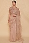 Featuring a blush pink saree in striped chanderi base with floral motif detailing. It is paired with an unstitched blouse. Accentuate with statement jewellery and heels for a wedding or ceremony.