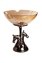A tinted glass bowl based on a cast metal stand crafted like a dual horse head finished in an antique finish.