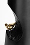 Crafted in ceramic, the tweet cut vase is an interestingly shaped black glazed vase with a cut design. A metal bird detail sits perched in the scooped portion of the vase.